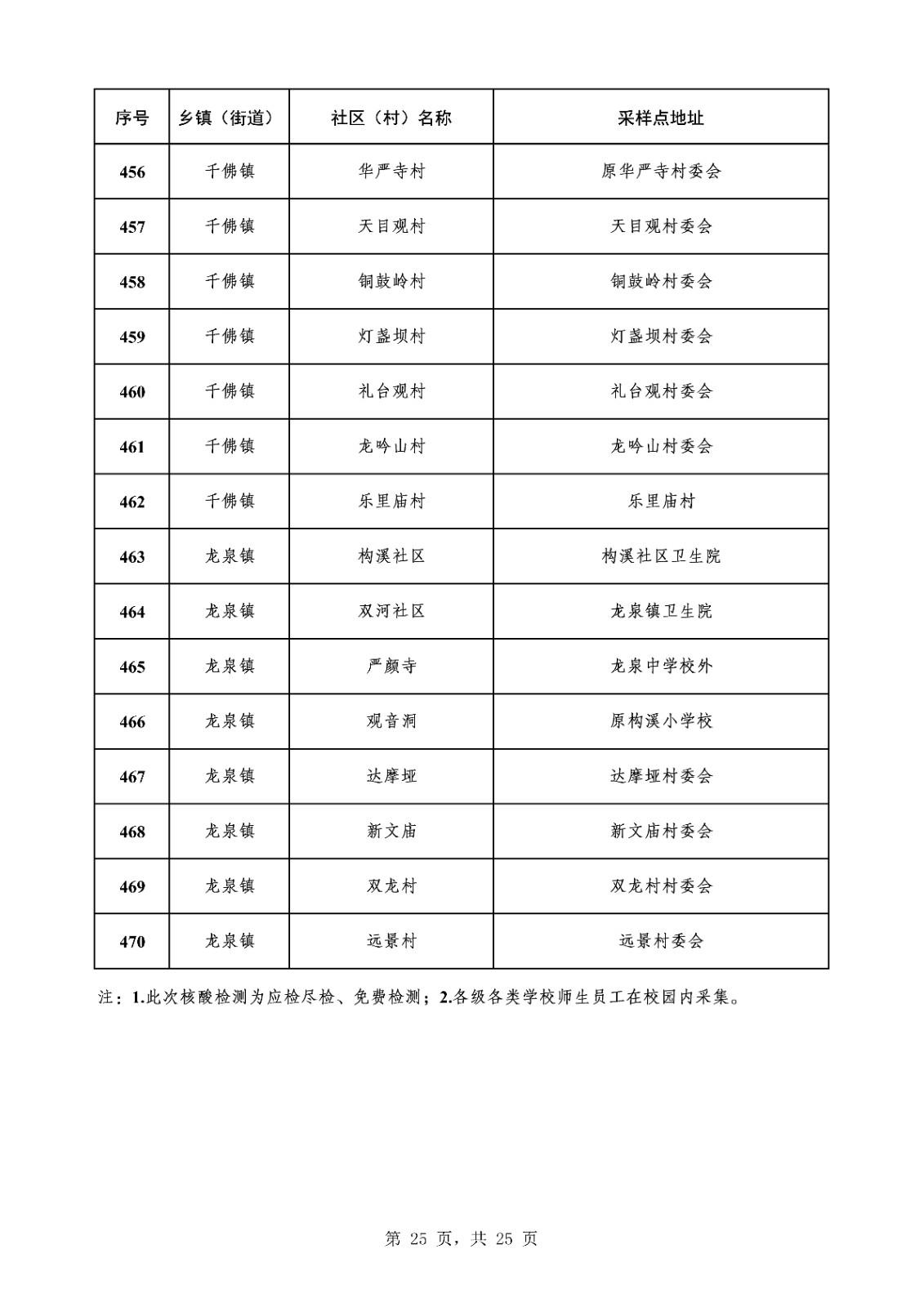 广大市民朋友: 为进一步织密织牢疫情防控网,切实维护广大群众生命安全和身体健康,我市根据上级要求开展全员免费核酸检测,现将有关事项提醒如下。 一、采样检测时间。9月22日6:00—11:30完成一次含常住人口、流动人员、全市各级各类学校师生等在内的全员核酸采样。期间,我市除高速路、火车站、汽车站便民核酸采样点外,其余便民核酸采样点暂停服务,22日下午按原公布时间恢复服务。 二、就地就近采样。本次全员核酸检测为应检尽检、免费检测,确保全市所有常住居民、流动人口在居住地就近采样,不漏一户一人。师生在各自学校采样,乡镇(街道)村(居)民在辖区村(社区)采样点就近采样。有发热、咳嗽、乏力等症状的人群和48小时内接种过新冠疫苗的人群,不参加此次核酸采样,但须将个人信息报居住地村(社区)。对正在居家隔离、黄码、行动不便、残疾、卧病在床、监所、养老机构等特殊群体,另行安排上门采样。 三、有关注意事项。请广大市民朋友提前携带好智能手机、本人有效身份证件,按村(社区)提示的错峰时间段前往核酸采样点排队等候,自觉遵守秩序,听从指挥,主动出示健康码,全程做好个人防护措施,规范佩戴口罩,保持“一米线”距离,做到不扎堆、不拥挤、不插队、不交谈、不围观、不逗留,有序采样、即采即走。不会使用“四川天府健康通”的老人、小孩,可在家人、邻居手机账号添加个人信息生成二维码,由家人陪同亮码采样,以减少排队等候时间。 广大市民朋友,为了您和家人的健康,请积极配合核酸检测工作。我们衷心感谢您的理解和支持,让我们继续携手巩固疫情防控成果,共同守护健康家园。 阆中市9月22日06:00-11:30核酸检测采样点 为进一步织密织牢疫情防控网,切实维护广大群众生命安全和身体健康,我市根据上级要求开展大规模免费核酸检测,为方便居民就近进行新冠病毒核酸检测,设置了一批核酸采样点,现将最新全市核酸采样点公布如下: